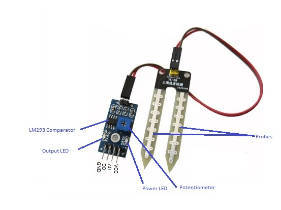 mendeteksi kelembaban tanah, yang dapat diakses menggunakan microcontroller